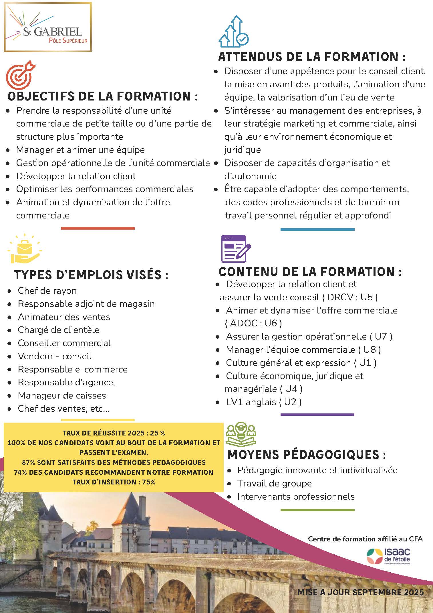 Titulaire de ce BTS vous êtes en mesure d’exercer dans plusieurs domaines : chef de rayon, responsable d’équipe, responsable commercial, assistante commerciale, télévendeur, …